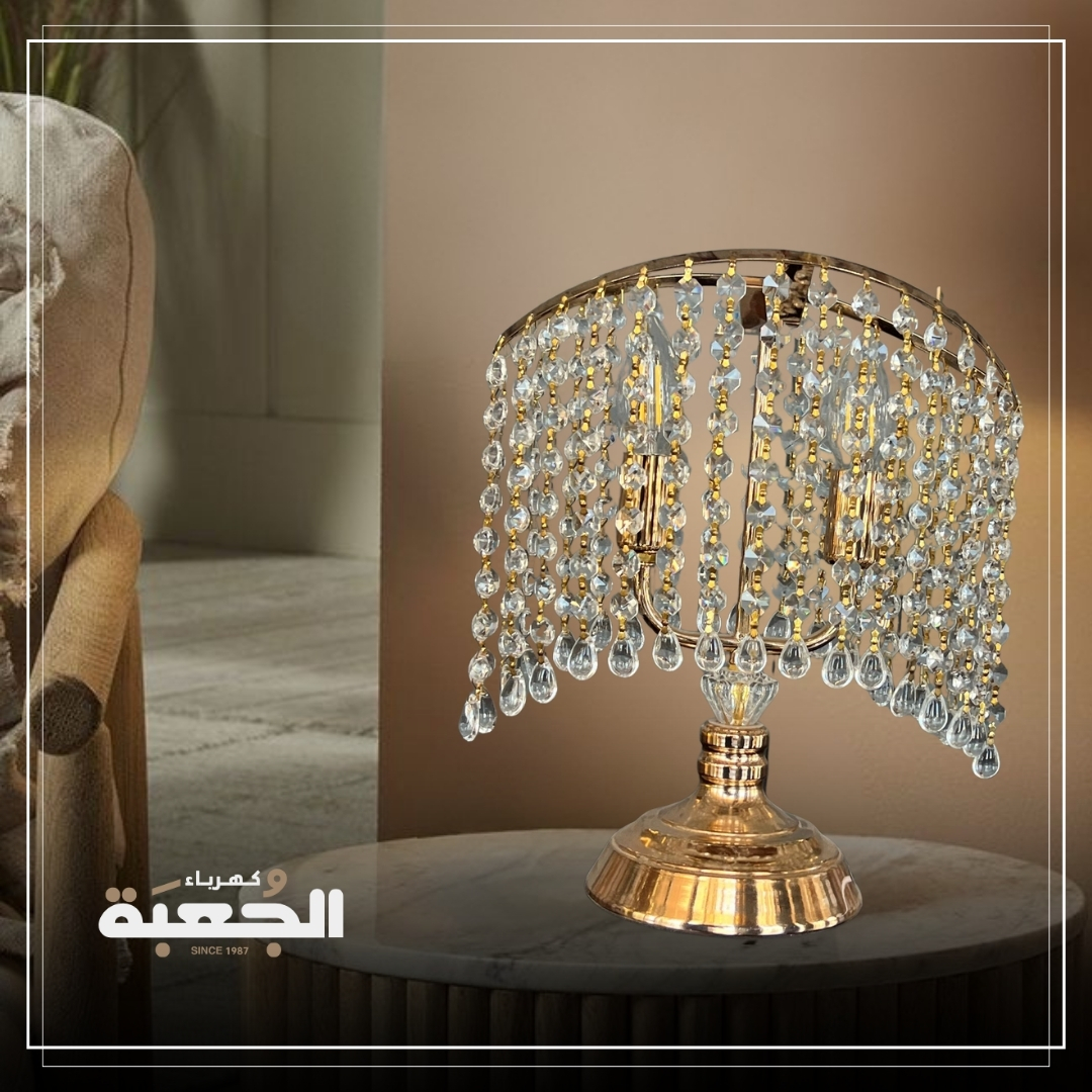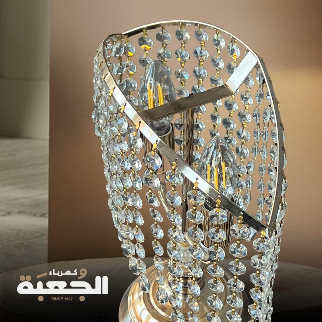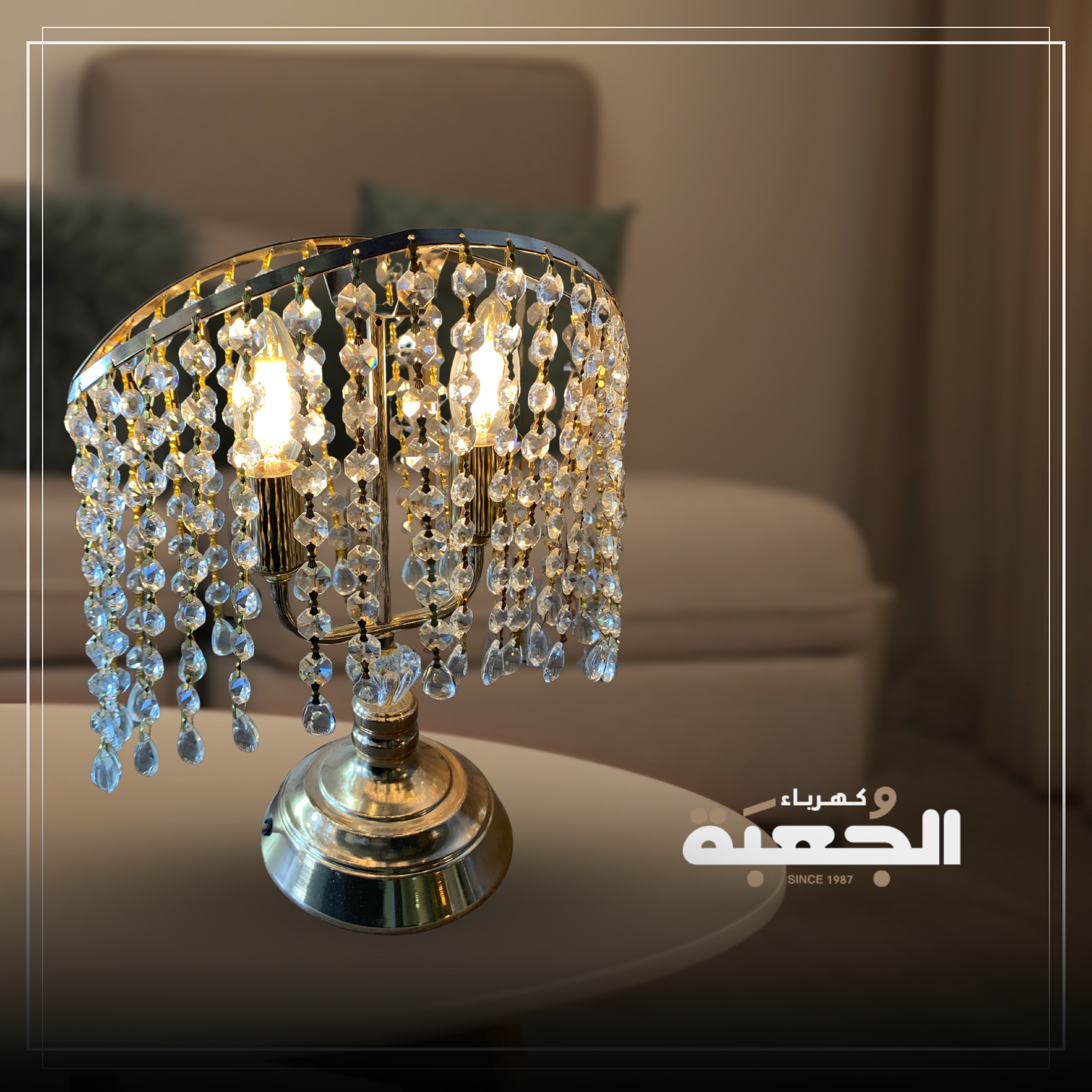 مواصفات الصنف: تيبل لامب كريستالي مميز لاستخدامات عديدة مثل الصالون وغرفة المعيشة