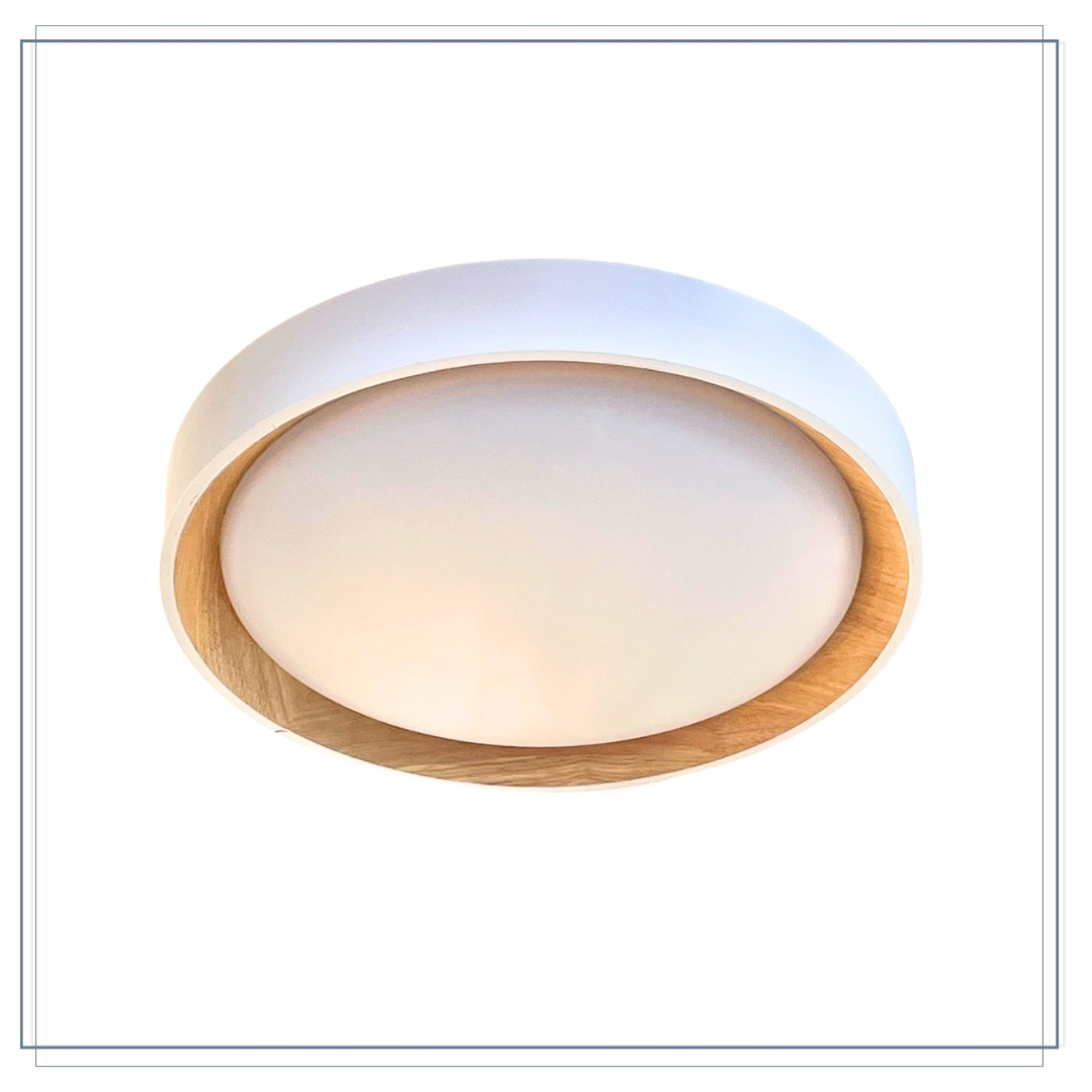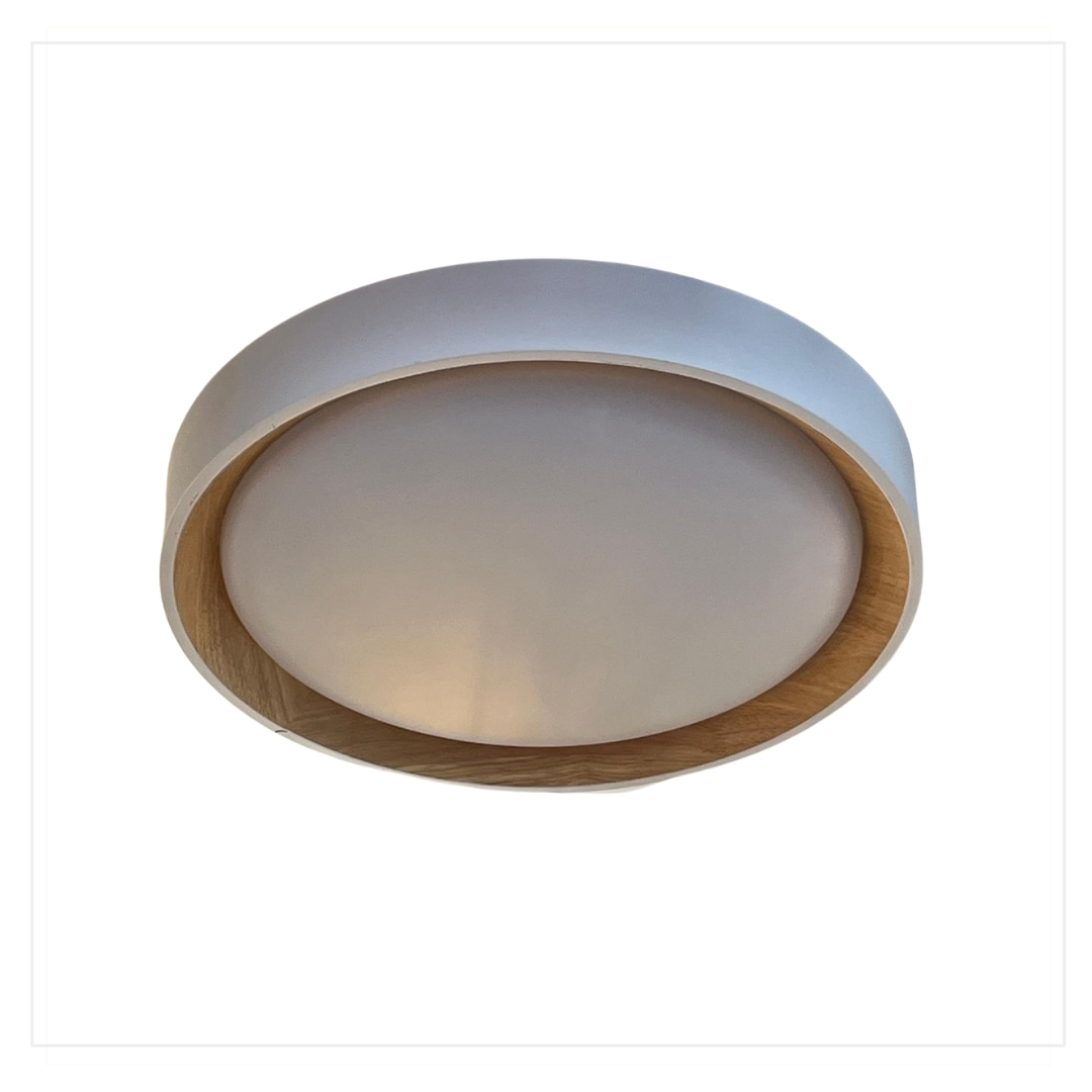 مواصفات الصنف : جلوب ليد بتصميم خشبي من الداخل، مع جسم ابيض يستخدم في عدة أماكن مثل غرف النوم// يوجد ريموت للتحكم بالاضاءة