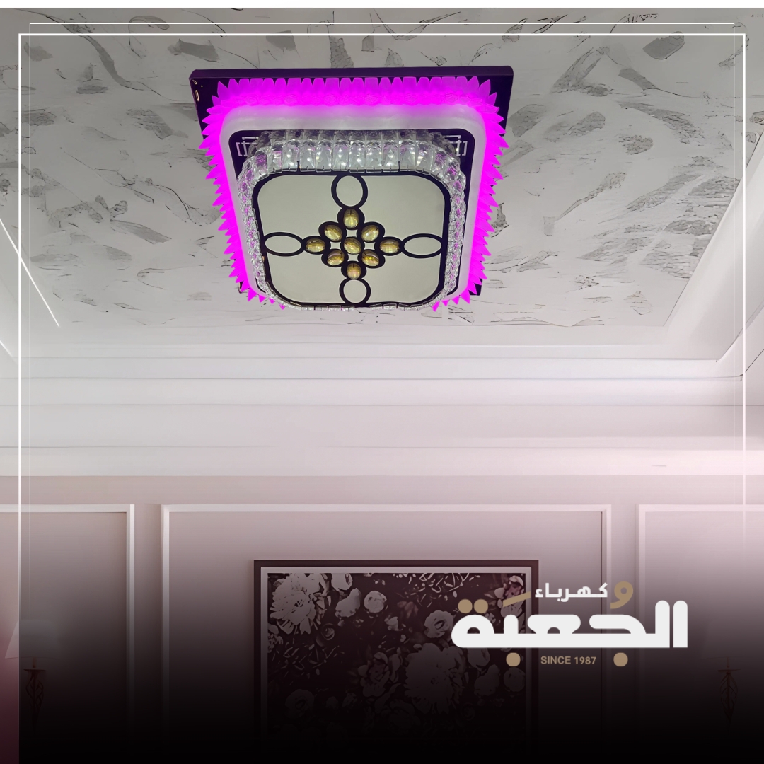 الانارة :50واط// CCT( اللون الاصفر الذهبي , الابيض الدافئ, الابيض) , تتميز ايضا بوجود انارة ملونة (اللون البنفسجي والازرق).