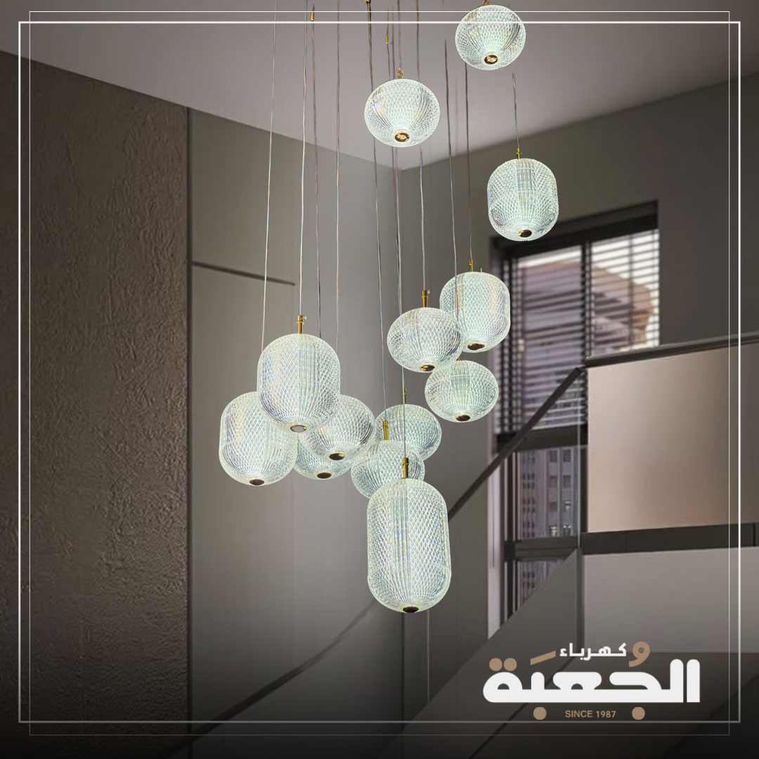 مواصفات الصنف: معلقة درج من الوحدات الكريستالية المميزة باختلاف احجامها مما تعطي تنوع وجمال للدرج