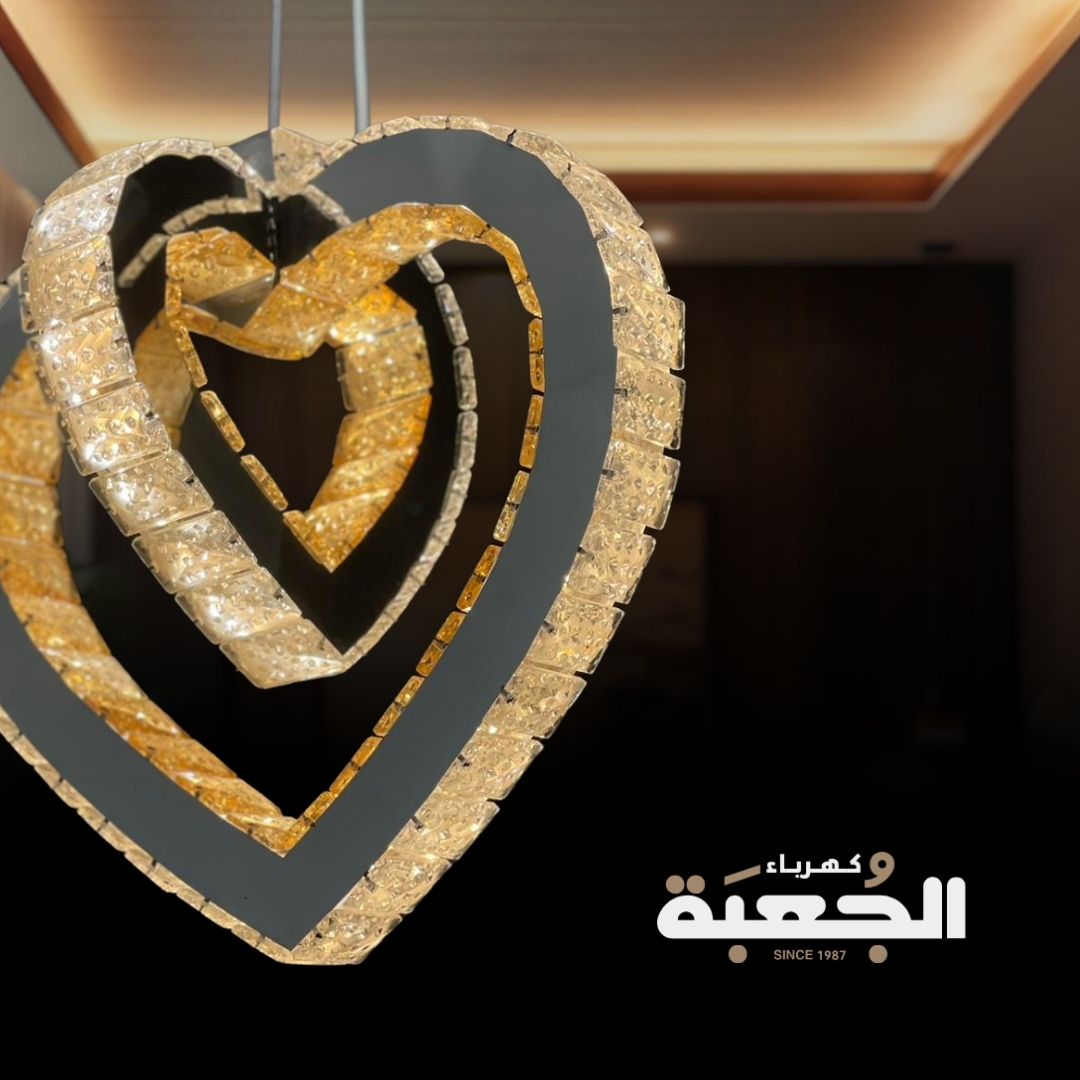 مواصفات الصنف : ثريا كريستال بشكل القلب بحجمين متداخلين باللون الاسود وحبات الكريستال الذهبية والفضية
