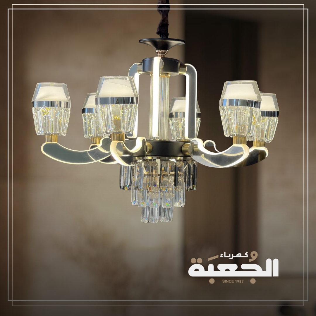مواصفات الصنف: ثريا ليد بتصميم كلاسيكي بلغة حديثة تجمع بينهما مع حبات الكريستال الفضي والاسود