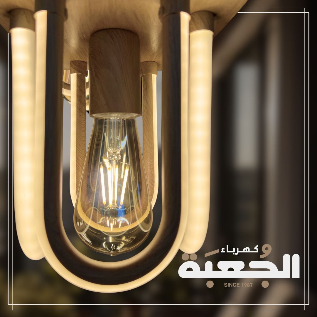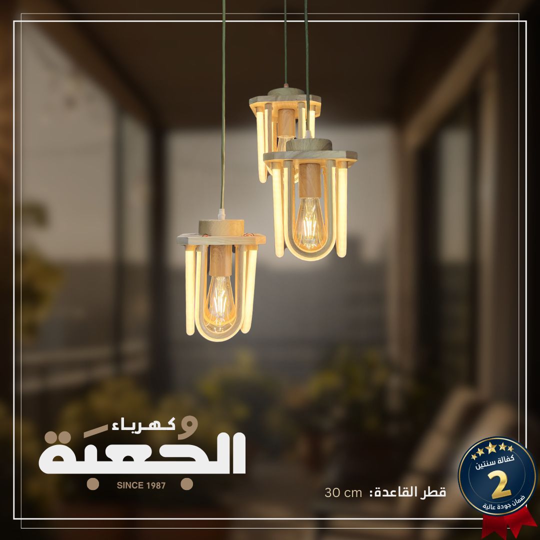 مواصفات الصنف : معلقة ليد ثلاثية خشبية مع لمبة بالوسط بتصميم ناعم ومميز