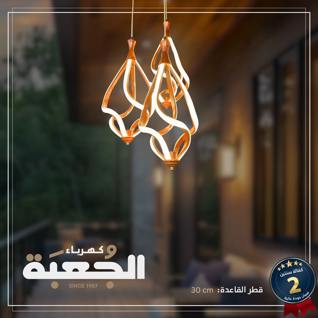 مواصفات الصنف : معلقة ليد ثلاثية خشبية بتصميم مميز وفريد