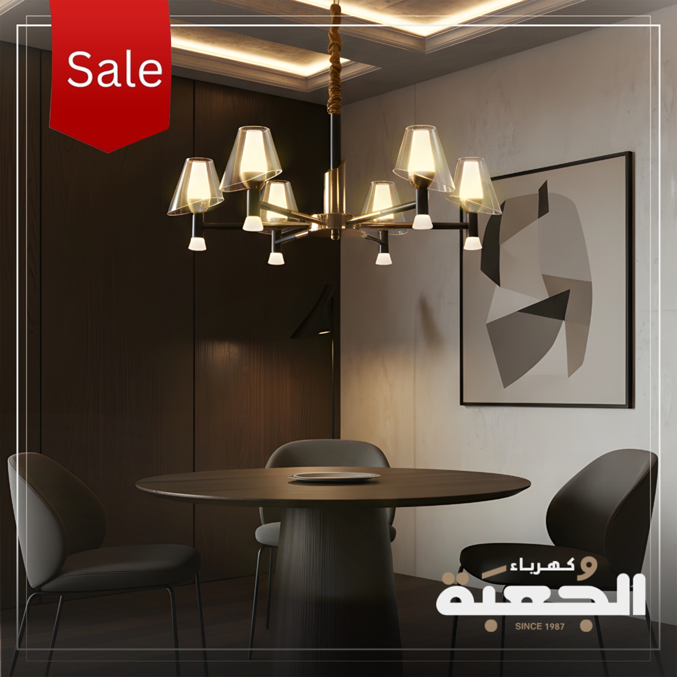 مواصفات الصنف: ثريا بتصميم أنيق يجمع بين المظهر الكلاسيكي والحديث بشكل يلائم عدة وظائف مثل الصالون او غرفة الجلوس