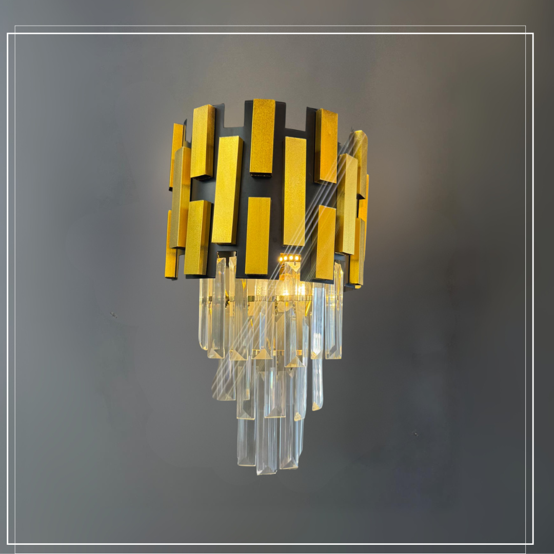 مواصفات الصنف : جنب كريستالي من طبقات متدلية مع اكسسوار ذهبي وأسود ، يستخدم في عدة أماكن مثل الصالون