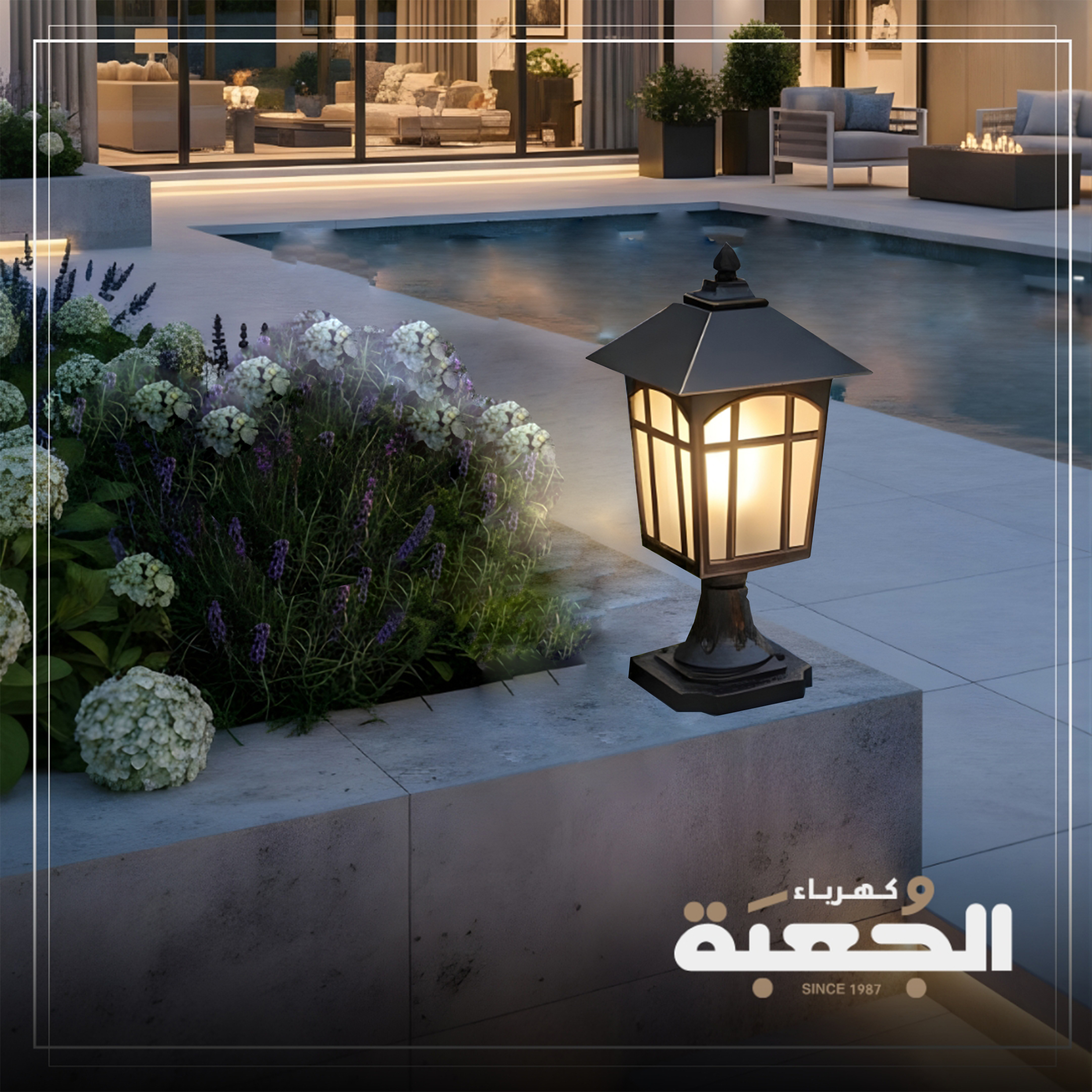 مواصفات الصنف : فانوس أرضي بتصميم معاصر، يستخدم في عدة أماكن مثل الساحات الخارجية