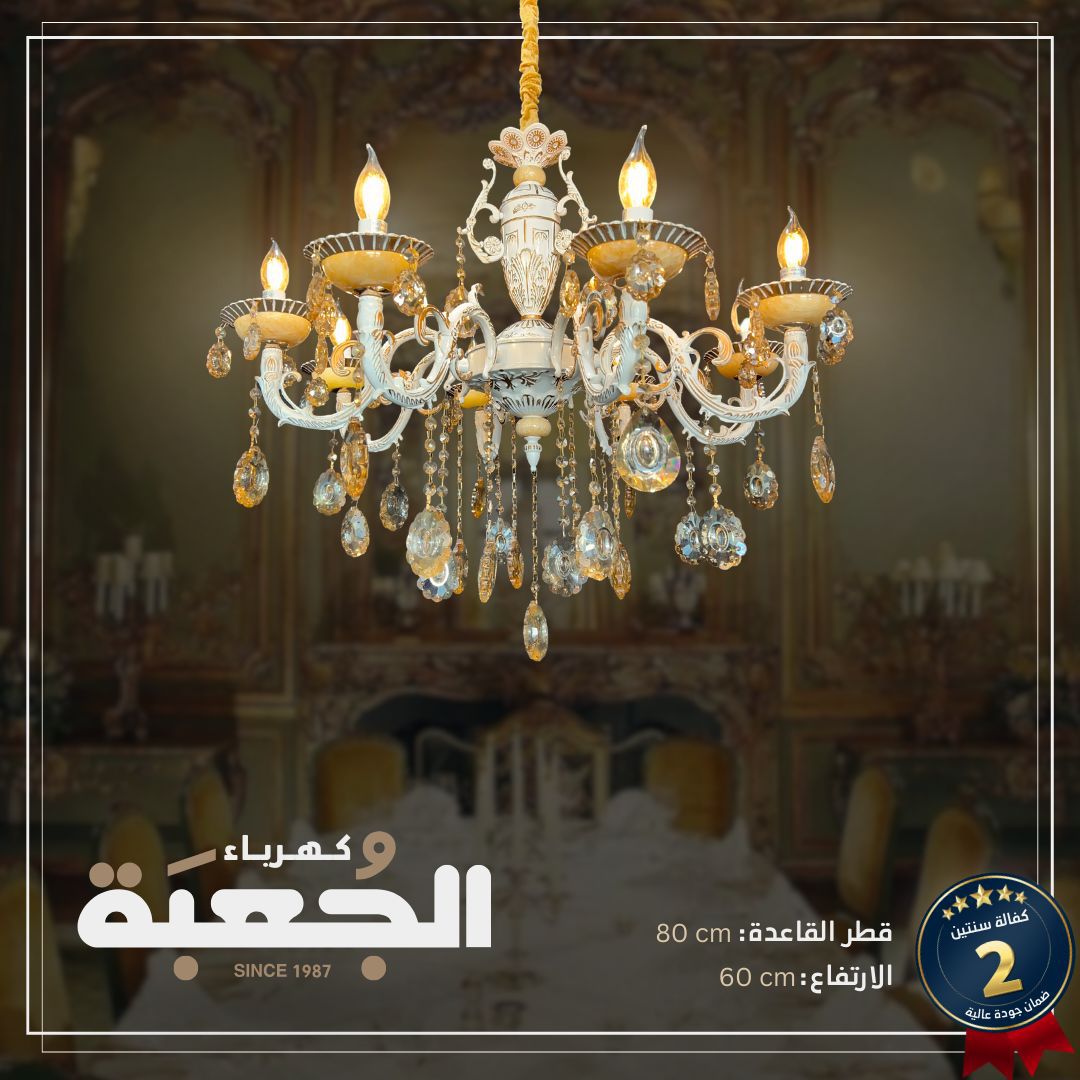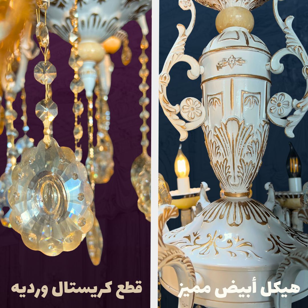 مواصفات الصنف : ثريا حجر المورانو ( حجر طبيعي) تحتوي على 8 لمبات نوعية E14